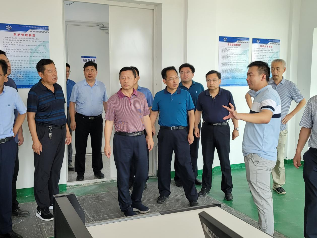 7月8日,在省流域中心、潍坊市、寿光市相关领导的陪同下,山东省水利厅一级巡视员王祖利到我公司承建的羊桥泵站、八面河泵站视察工程防洪度汛准备情况。检查组一行察看了泵站中控室、主厂房、挡潮闸等,项目经理张仰保汇报了工程所取得的进展,操作人员演示了主泵开机排涝,检查组对工程所取得的效果一致表示满意。