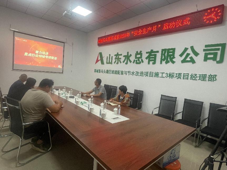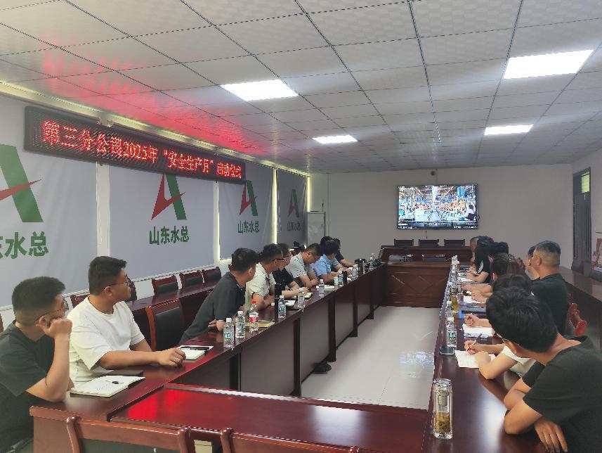 为大力推进项目安全生产工作,提高全员安全意识,迅速营造“安全生产月”活动氛围。近日,第三分公司以郯城县李庄灌区项目部作为主会场召开2025年“安全生产月”动员会暨启动仪式,各项目部视频参会。